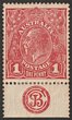 1d Damson (G70½) compartment lines left margin. VFU, with partial Summer Hill NSW 28 MR 1918. SG 47(var), ACSC 72K cat $200. (P) |