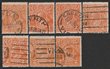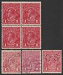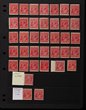 1d Red mainly smooth papers variety collection 'flaw under neck' (7/37) - 6 in various shades (1 rounded cnr) & 'ferns' (7/54) - 3 examples. Generally fresh F-VF MLH. SG 21(var). ACSC 71(4)h cat $700. (9) |