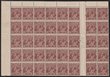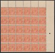 ½d Pale Orange wmk INVERTED blks of 48 identified as 7L1-4, 7R1-48, inc blk 7L1-48- major varieties 'SW cnr broken' (ACSC 66B(7)d), blk 7R1-48 has numerous varieties inc 'border of RVT distorted' (ACSC 66B(7)k). SG 56w cat £864 for M singles, should be at least double for MUH = A$1720. ACSC 66Ba cat $2000+. Exhibition piece as inverted wmk blks this large are not often seen. Ex Sandy. (96) |