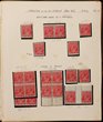 1d Red minor variety collection inc compartment lines & dots, various frame faults, also inc 4 major varieties 'dot before 1' (6/21), 'neck flaw' (7/37), 'ferns' (7/54) & 'run N, 2nd state' (8/60) & 2 inverted wmks. Interesting range for plating, some prs. Generally F-VF MLH, few MUH. SG 21(var). ACSC 71 cat $1500+. (60) |