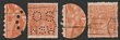 2d Orange Error Watermark INVERTED perf OS blk of 4. Mint multiples are scarce. Interesting that many of the OS holes have not punched out. F-VF MLH, 1 with gum thin. SG O71w cat £1300 M. ACSC 95E9cat $1600. Ex Sandy. (4). (P) |