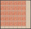 2d Orange Electro 9 (dull to pale semi-surfaced paper), top left marginal blk of 30 plated as 9L1-30. It shows the cracked electros on 9L7 (ACSC 95G(9)e & 9L8 (ACSC 95(9)f) & the south west corner compartment line. The cracks on this electro are very rare and this is a stunning item & would be the highlight of any exhibition display. We are not aware of any similar item being offered at auction in the last 20-30 years. F-VF MUH, evenly sl darker gum. SG 62(var). ACSC 95G cat $16,000+ after taking into allowing double for MUH varieties. Ex Sandy. (30). (P) |