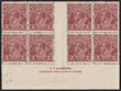 2d Red-brown marginal blk of 4, UR stamp variety 'large white flaw in right value tablet'. VF fresh, 2MLH/2MUH inc variety MUH. SG 78(var). ACSC 97A(16)f cat $450+. (4) (P) |