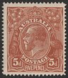 5d Chestnut single line perf. Superb fresh MUH, W/C. SG 23 cat £50 for M, should be at least double £100 MUH. ACSC 122A cat $375. (P) |