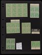 1d Green variety collection on pages in singles & mainly blks, all wmks & perfs inc Large Multi wmk blk of 4 with 'secret mark' & 'PENAVY' flaw, Harrison plate 4 imprint blk of 4, Small Multi wmk perf 14, study of 'retouches to wattle line' & 'neck flaw' in blks of 4 (4 blks) & prs, 1 blk shows heavy inking to King's face which is not reported but occurred for a short period, 4 Mullett/Ash imprint plate 4 blks of 8 with original flaws & retouches inc Mullett imprint with varieties 'ferns' & 'RA joined' before retouching which is scarce (cat $1000+), Small Multi wmk perf 13½x12½ Die I/II study (30+) inc prs, blks, perf OS & inverted wmk, wmk inverted coil strip of 3 with varieties 7/25, 7/31 & 7/37 retouched, CofA inverted wmk blk of 4, high catalogue value & research material for the specialist. Some mixed condition, mostly F-VF MLH/MUH. SG 76(var). ACSC 77-81 est cat $10,000+. Ex Sandy. (190+) (P)