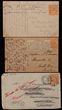 Covers: 1920s covers/postcards with KGV 2d orange, noted an interesting postcard with public notice of intention to apply for Aust citizenship. Several bereavement covers. Generally G-VF. ACSC cat on cover is $20 x 13 = $260 as cheapest. (13)