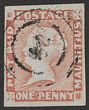 1848-59 QV Post Paid 1d red on greyish paper, worn impression. VFU, 4 margins, concentric circles pmk. Scott 5b cat US$850. SG 16 cat £1100. Nice quality classic. Brandon photo-cert. (P)