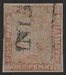 1848-59 QV Post Paid 1d red, latest impression, on greyish wove paper. VFU appearance, expertly repaired & now 4 margins, rectangular boxed pmk. Scott 3e cat US$750. SG 23 cat £900. (P)