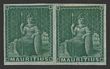1858-62 Britannia (4d) green, imperf horiz pr. Superb fresh M, all 4 margins. Scott 9 cat US$1100, SG 27 cat £950+ as singles, plus premium for nice classic multiple. (2) (P)