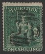 1862 Britannia 1/- deep green, intermediate perf 14 to 16. F-VF U, barred oval '53' pmk. Scott 23 cat US$350, SG 55 cat £450. (P)