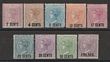 1878 QV Decimal Surch set 2c-2R50c on 5/-. Mostly F-VF M, nice colours. SG 83-91 cat £700. Rare set. (9). (P)