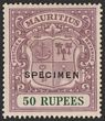 1921-26 Arms 50R dull purple & green, opt SPECIMEN. VF fresh MLH. Scott 200s cat US$400. SG 222s cat £400 (normal cat £1000). (P)