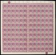 1938-49 KGVI 3c reddish purple & scarlet full sheet showing varieties 'sliced 'S' at right twice [R2-3/2]. VF fresh MUH. SG 253/a cat £406++. (120).