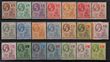 1908-19 KEVII Badge New Colours set ½d to 5/- plus 3d shade. VF fresh M/MLH. Scott 31A-40 cat US$203. SG 35-47 cat £201. (11). (P)
