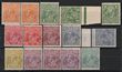 Set: ½d Orange to 1/4 turquoise inc some shades, 3d blue type A & B, 1d green Inverted wmk & 1d green variety 'secret wmk'. Fresh F-VF MLH, few MUH. SG 85-92 cat £550+. ACSC cat $1500+. Quantity complete collection for this wmk. (16) (P) |