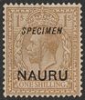 1916-23 'NAURU' opt KGV 1/- bistre-brown, opt SPECIMEN. VF fresh MLH. SG 12s cat £140. (P)