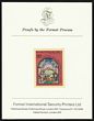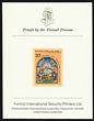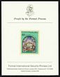 1975 Christmas 20c UNISSUED value imperf proof design as 7c & 15c, but with green background & yellow frame, affixed to Format Printers card. VF UN. SG 140(p). Only one we have seen. (P)