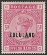 1888-93 'ZULULAND' opt QV 5/- rose. VFM appearance but expertly regummed. Scott 11 cat US$725. SG 11 cat £750. Rare genuine example. (P) |