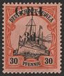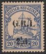 1914-15 'GRI 3d' 6mm opt DNG Yacht 30pf black & orange, variety 'opt shift up' with GRI at top of stamps over the German inscription. VF fresh MLH. Scott 8 cat US$475+. SG 8 cat £475. Exp Bothe BPP. (P)