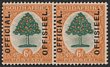 1926 'OFFICIAL OFFISIEEL' opt Orange Tree 6d green & orange, horiz bilingual pr, opt reading up with stops. F-VF MLH/MUH. Scott 04 cat US$550. SG 04 cat £700. (P) |