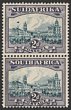 1927-30 Ox Wagon 2/6 green & brown, horiz bilingual pr, London printing, perf 14x13½. Stamps VF fresh MUH, top marginal. Scott 30c cat SU$400 for M. SG 37a cat £400 for M, should be at least double £800 MUH. (P) |