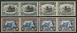 1930-44 Ship 1d black & carmine Type II, English & Afrikaans stamp, Rotogravure printing, error centre OMITTED, with 2 normals to compare. VF fresh MUH. Scott 34c cat US$4500. SG 43ewa cat £1800 for M horiz pr, should be at least double, £3600 MUH. (4). (P) |