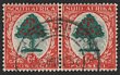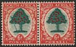 1933-48 Orange Tree 6d green & vermilion, Die I, horiz bilingual pr, variety left stamp 'Falling Ladder'. VFU appearance, closed tear at left. SG 61a cat £350. (P) |