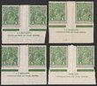 1d Green, plate 4, imprint prs (4) showing the progression of the variety 'RA join' (7/60) & the change of printers. Firstly Mullett pr with 'RA join' (Oct - Mar 1927), this is quite scarce, Mullett pr with 'RA retouch' (Mar - Sep 27) both in translucent & normal paper, Ash pr with 'RA retouch'. Scarce assembly of imprints. F-VF 2 MUH/1 MLH. SG 86(var). ACSC 80A(4)z cat $1000+ for imprint prs. (8) |