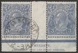 3d Blue, plate 4, Mullett imprint pr with variety 'white flaw over IA' type B (ACSC 106A(4)2). It is a type A/B pr & has a GPO Melbourne cds. VFU. SG 90(var). ACSC 106A(4)z cat $750 as Mint blk, should be at least $375 for used. Postally Used imprint prs are much scarcer than Mint prs. (3) (P) |