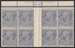 3d Deep dull blue Die IA Ash Plate 4 imprint blk of 8 with error wmk INVERTED, outer prs are A-B prs. F-VF MUH, uneven gum colour. SG 100aw(var), ACSC 107E(4)z cat $5000+ for M blk, plus an extra $3500 for the 2 outside of imprint A-B prs, total $8500 M, should be double, $17,000 MUH. ACSC states there are only 3 such imprint blks known. Ex Sandy. (8) (P) |