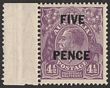 Five Pence on 4½d deep violet-aniline. VF fresh MUH. SG 120(var). ACSC 125B cat $600 for M, should be at least double, $1200 MUH. Rare shade. 2024 Drury photo cert. (P) |