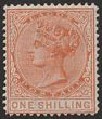 1876-79 QV 1/-orange, wmk Crown CC, perf 14. VF UN, nice colour. Scott 12 cat US$950. SG 16 cat £1300. Rare unused. (P)