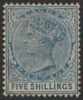 1884-86 QV 5/- blue, wmk Crown CA. VFM, sl disturbed gum. Scott 35 cat US$750. SG 28 cat £750. Sperati forgery & with his pencil signature. (P)