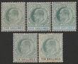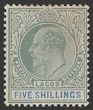 1904 KEVII 5/- green & blue, wmk crown CA. VF fresh M. Scott 48 cat US$150, SG 52 cat £150. (P)