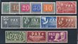 1945 Peace set 5c-10Fr. VF fresh MUH. Mi 447-59 cat €500. SG 447-59 cat £275 for M, should be at least double, £550. MUH. (13) (P) |