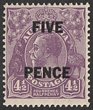 FIVE PENCE on 4½d deep violet-aniline. Fresh VF MUH. SG 120(var), ACSC 125B cat $600 for M, should be at least double, $1200 MUH. Rare shade. Copy of 2024 Drury photo cert for blk it came from. (4) (P) |