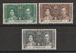 1937 KGVI Coronation set ½d-2d, perf SPECIMEN. VF fresh MUH. SG 127s-129s cat £150. Scarce genuine set. (3) (P)