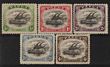1907-10 Lakatoi small Papua ½d, 1d, 2½d & 4d simplified all with variety 'rift in sky' VFM. SG 49(var), 50(var), 59(var), 62(var), 63(var) cat £168 as per footnote. (5). (P)