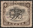 1907-10 Lakatoi Small Papua 4d black & sepia, wmk upright, perf 12½, perf OS INVERTED. VFU with cnr cds. SG O12(var). 2025 Ceremuga AIEP photo-cert. (P)