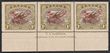 1930 Lakatoi Airmail Plane 1/- sepia & olive opt in deep carmine-lake (instead of normal carmine) Harrison imprint strip of 3 with 'tail flaw' on 3rd stamp. Very rare imprint with Croker suggesting only 10 sheets of deep carmine-lake opt printed. VF MUH. SG 117(var). 2025 Ceremuga AIEP photo-cert. (3) (P)