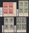 1935-41 John Ash imprints blks of 4 inc 1935 Silver Jubilee 1d & 5d 'accent' flaw, 1938 2d to 1/- 50th Anniversary & 1939-41 Air 2d to 1/6. Mostly F-VF MLH, little mixed condition inc tropicalisation. SG 150-168 cat £490, should be at least double for imprints £980 = A$1960. Scarce group. (72) (P)
