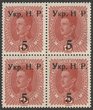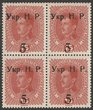 Western Ukraine: 1918 Kolomyja 'Ukr. N. R.' opt on Austria 5/15h red-brown, blk of 4 with varieties 'no stop after N' & 'U from diff font.' VF fresh MUH Scott 5(var). SG 1 cat £520+++, Mi 1(var) cat €600+++ both for M singles, so should be at least double, €1200+, plus premium for positional variety multiple. Exp, plus 2014 Ceremuga AIEP photo cert. (4) (P) |