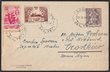 Soviet Russian Occup of Eastern Poland:^ 1939 Kasimierz 25gr Envelope uprated Russia 1939 Agricultural Fair 10k & 15k tied by 'Nadine Zah, Ukr.26.X.39' Ukrainian provisional cds which was soon replaced by Soviet cds. Rare mixed franking. |