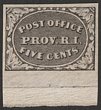 1846 Rhode Island Postmaster Provisional 5c black. Superb UN, bottom marginal with 4 margins. Scott 10X1 cat US$175 for UN (US$375 for M). SG 70 cat £375. (P) |