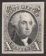 1847 Washington 10c grey-black, plate proof on card, imperf, in issued colour. Superb UN as made, 4 margins. SG 2(p) cat £35,000 as normal. Sc 4PU cat US$250 (normal cat US$37,500). (P) |