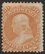1861-62 Franklin 30c orange perf 12½. Fresh FM appearance but regummed. Scott 71 cat $1000 for UN. SG 67 cat£2500 for M. (P) |