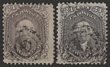 1861-66 Washington 12c grey-lilac & 12c grey shades, perf 12. FU. Scott 78a, 78b cat US$925. SG 74a, 74b cat £725. (2) (P) |