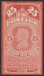 1865 Newspaper Stamp 25c orange-red. VFU, with traces of indistinct cancel. Scott PR3 cat US$2250. SG N77 cat £2500. (P) |