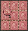 1917-19 Washington 2c rose, se-tenant blk of 9, error centre stamp 5c rose. VF MLH appearance but nicely re-gummed. Scott 505 cat US$625. SG 469/473 cat £635 For singles plus premium for positional se-tenant blk, which should be +50%, so est cat £953. (P) |