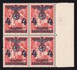 Poland-General Govt: 1940 Eagle & Swastika opt 4gr/5gr blk of 4 left marginal, UL variety 'accent on a in General'. VF fresh MUH. Mi 18/18II cat €122. Exp Korszen & Ceremuga AIEP.
